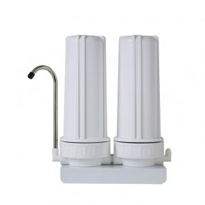 Διπλή φιλτροθήκη με κλασσικό design που προσαρμόζεται εύκολα στη βρύση σας και τοποθετείται πάνω στον πάγκο της κουζίνας σας.